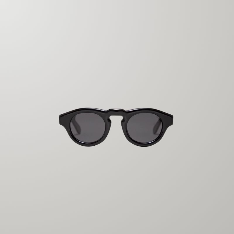 Gafas de sol de acetato color negro de 6mm de grosor con redondeo en contornos. Patillas de acetato. Lente orgánica gris con 100% protección UV. Plaquetas de acetato incorporadas. Bisagras fijas. Hechas a mano en Argentina.